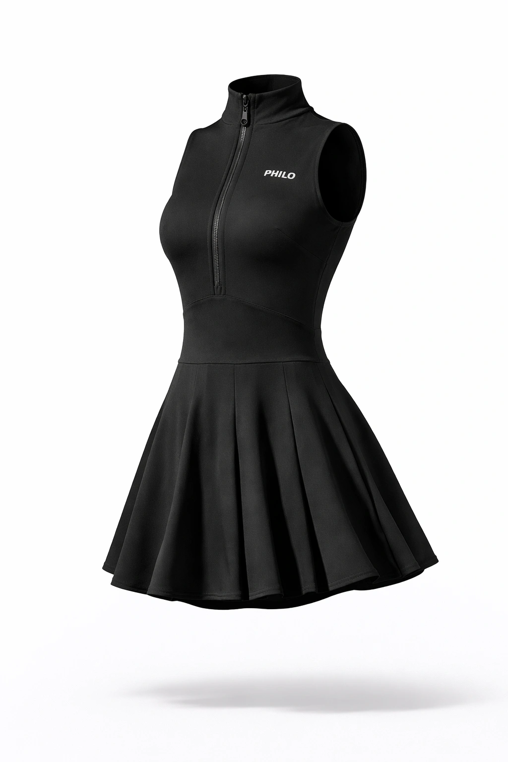 Sukienka posiada praktyczny zamek z przodu, który można rozpiąć według uznania i samopoczucia. Delikatne odcięcie w talii subtelnie podkreśla talie, a plisowany dół inspirowany klasyczną sukieną tenisową dodaje lekkości i dynamiki w ruchu. To idealny wybór na trening czy turniej- lekka, przewiewna dzianina dba o wygodę i styl na polu golfowym i nie tylko.