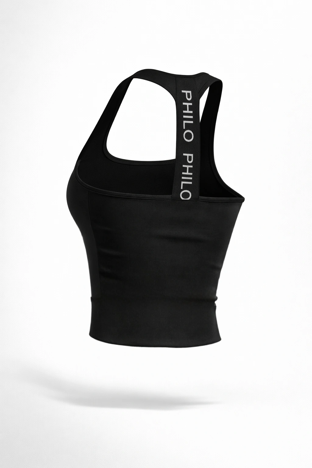 Top damski z logowaną gumą "Racer back logo top black" by Philo New York