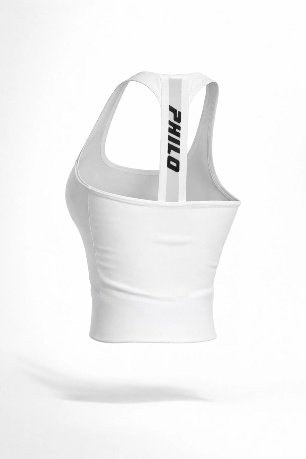 Top damski z logowaną gumą "Racer back logo top white" by Philo New York