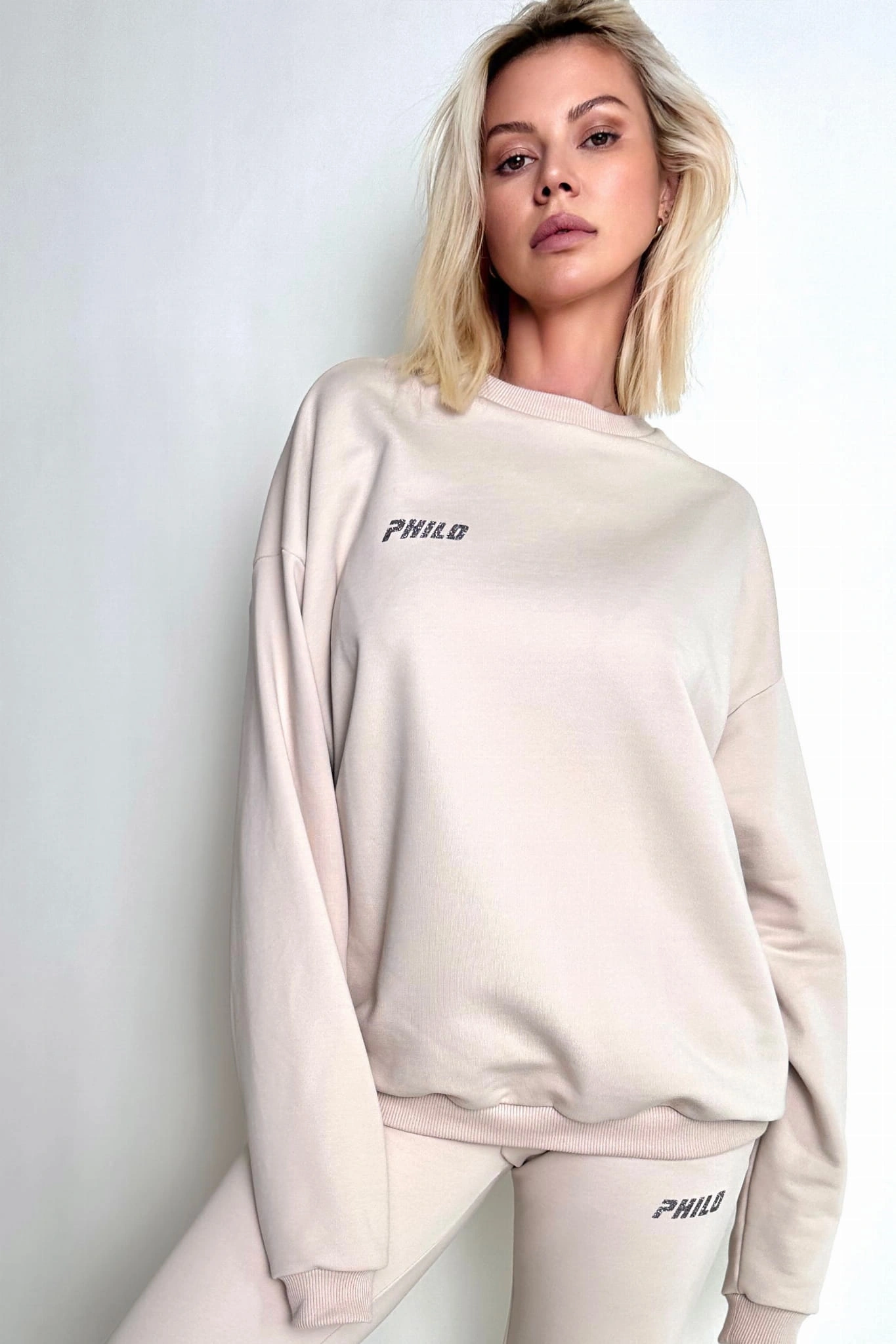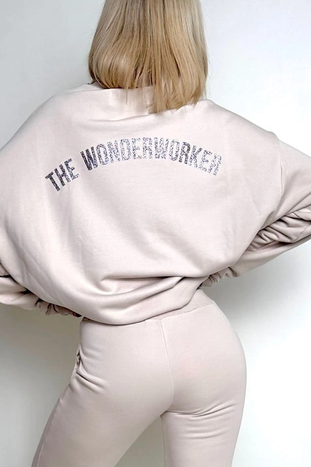 Basic sweatshirt w kolorze beżowym, z glitterem "The Wonderworker Snug Sweatshirt " by Philo New York